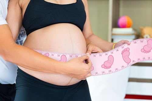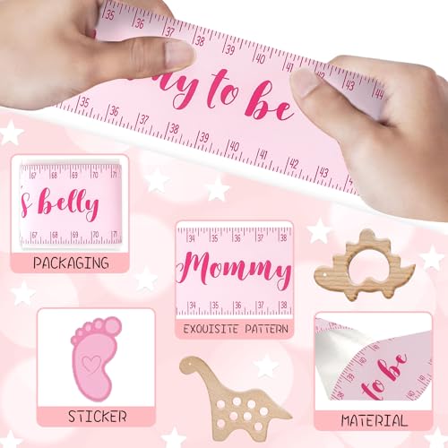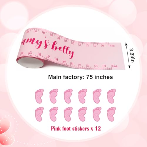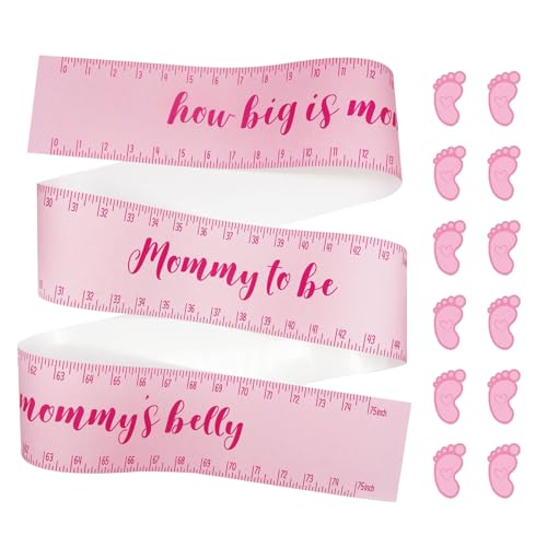 Baby Shower Game Belly Measuring Tape for Girls Gender Neutral, 75 Inch Mommy Pregnant Belly Tape Pink Tummy Measuring Tape with Footprint Stickers for How Big is Mommy Belly Game Supplies