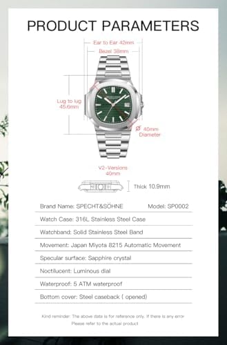 Sponsored Ad - Specht & Söhne Mens Mechanical Watch Automatic Sapphire Crystal Watches for Men 40MM Japan Miyota 8215 Movement 50MWaterproof