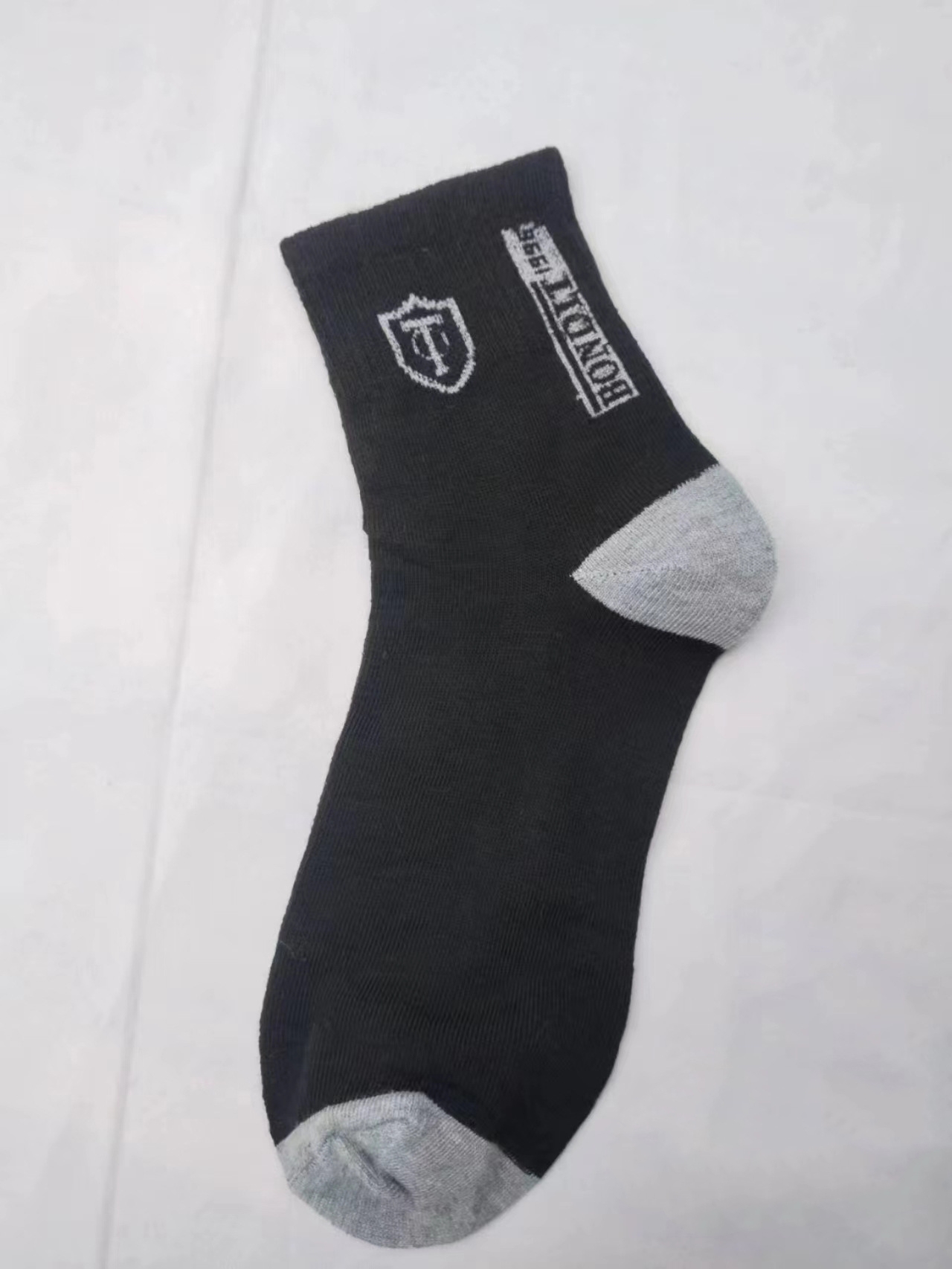Color: black gray True to description: true Just received.. the fabric is very good.. soft and smooth.. the socks are also thick.. better than the price.. will continue to support