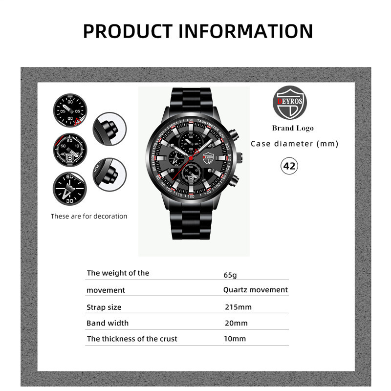 Men's Watch with Bracelet 2023 New Men's Watch Fashion Business Stainless Steel Quartz Watch