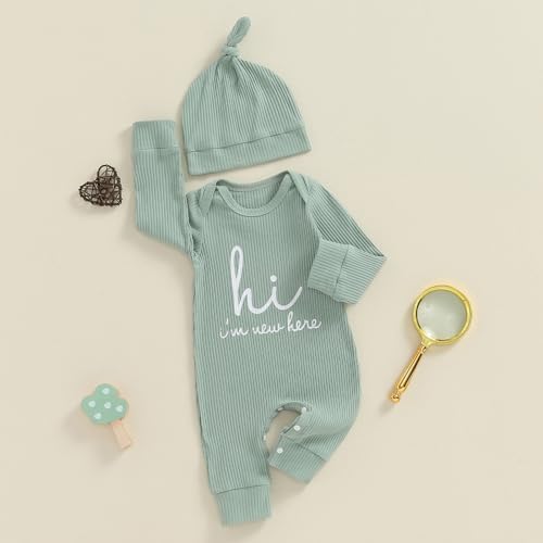 Newborn Baby Boy Girl Clothes Hi I'm New Here Coming Home From Hospital Outfits Gender Neutral One Piece Romper