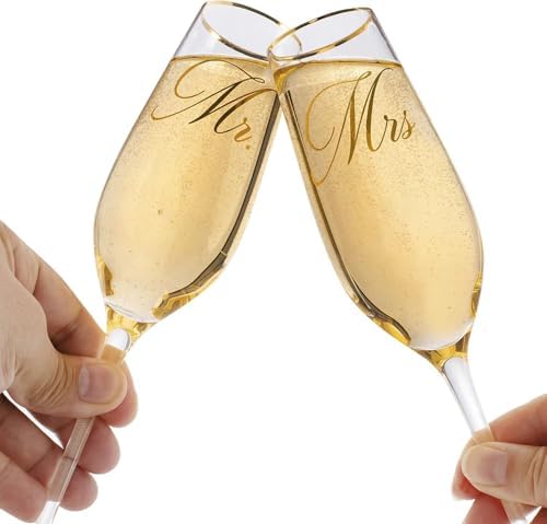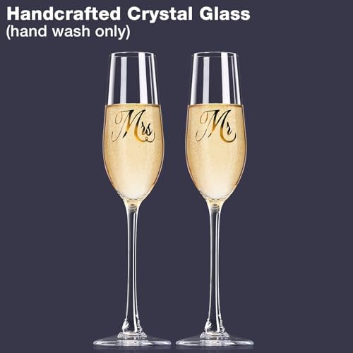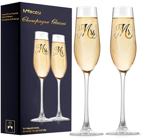 Mfacoy Mr. & Mrs. Champagne Flute Set, Wedding Decor - His and Hers, Wedding Toasting Glasses for Engagement Celebrations, Bridal Shower and Registry Idea, Tall Wine Glasses for Bride and Groom Gifts