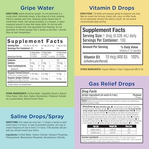 Mommy's Bliss 4-Piece Newborn and Baby Essentials Kit - With Gripe Water, Gas Relief Drops, Vitamin D 400IU, and Saline Drops/Spray - The Perfect Baby Gift.