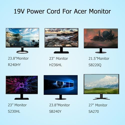 19V AC Power Cord for Acer Monitor R240HY SB220Q SA230 S231HL S232HL H236HL S202HL S230HL S240HL S220HQL S271HL S241HL G246HL Replacement LCD LED Display Power Supply Adapter
