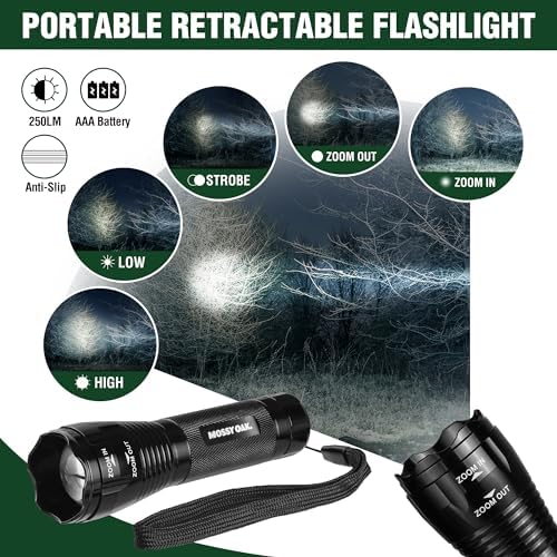 Mossy Oak Hatchet and Machete Knife Set with Sheath, One-Piece Axe & Hunting Knives with Paracord Handle, Zoomable Flashlight, Many Other Tools, Ideal Gift for Men Who Likes Hunting Outdoor Adventure