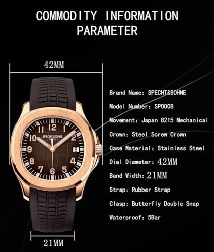 Sponsored Ad - Specht & Söhne Watches for Men Japan Miyota 8215 Movement Watch Sport Movt Classic Automatic Mechanical Mens Wristwatch Rubber Strap Waterproof 40MM