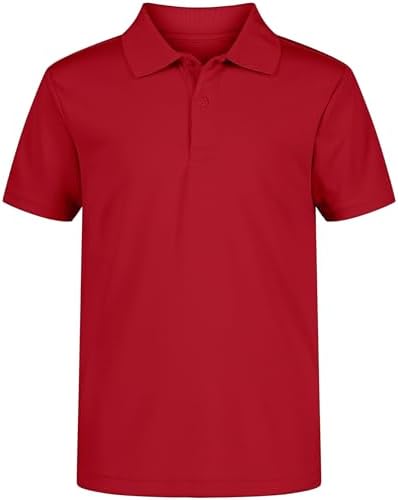Boys' School Uniform Short Sleeve Polo Shirt, Button Closure, Moisture Wicking Performance Material
