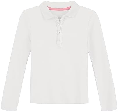 Girls' Uniform Long Sleeve Polo with Ruffle Placket