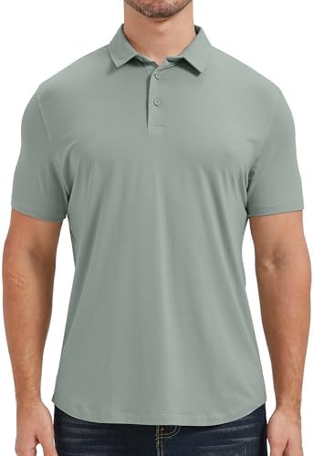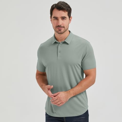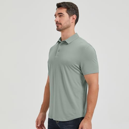 Sponsored Ad - Mens Lightweight Bamboo Viscose Polo Ultra Soft Curved Hem UPF 50+ Casual Collared Golf Shirt