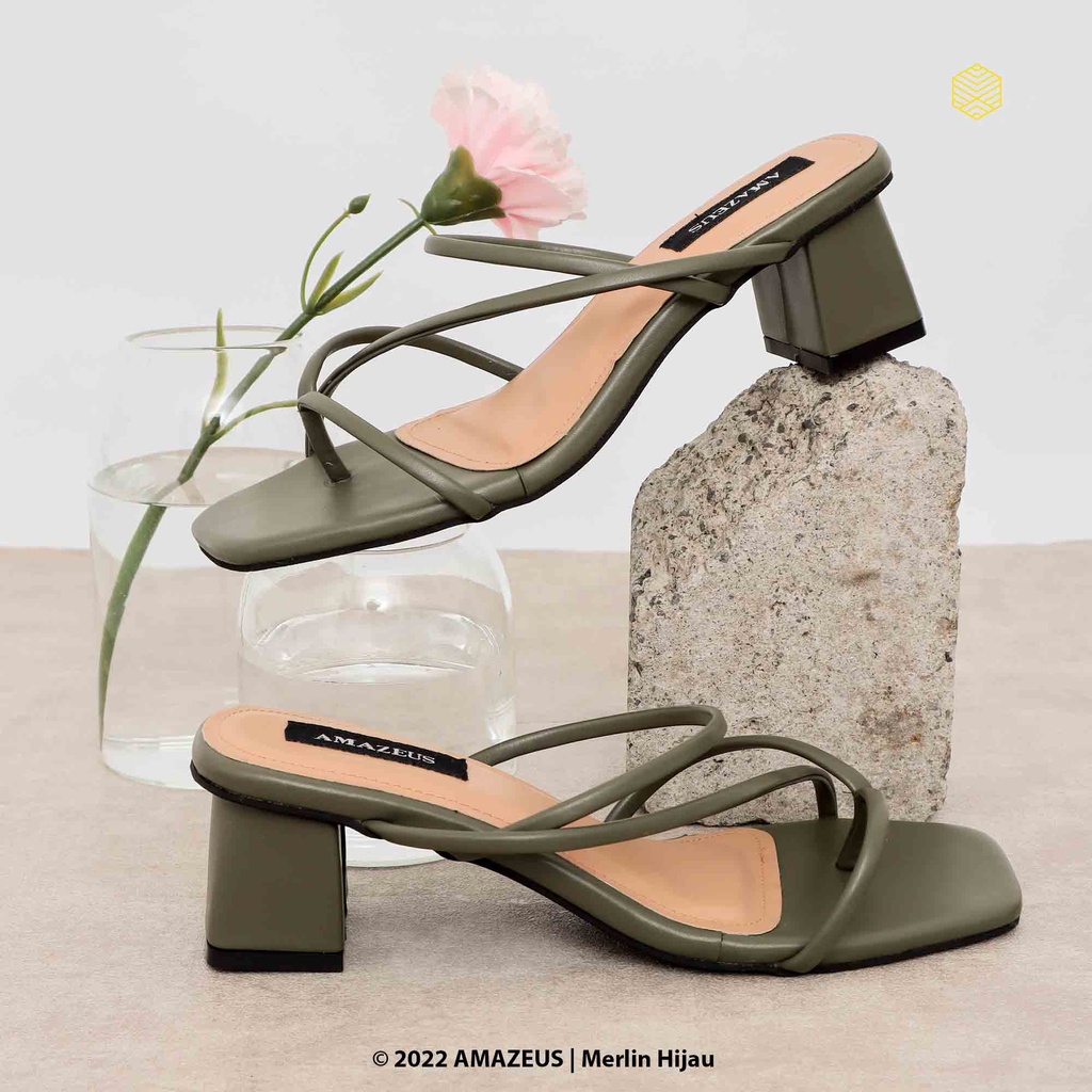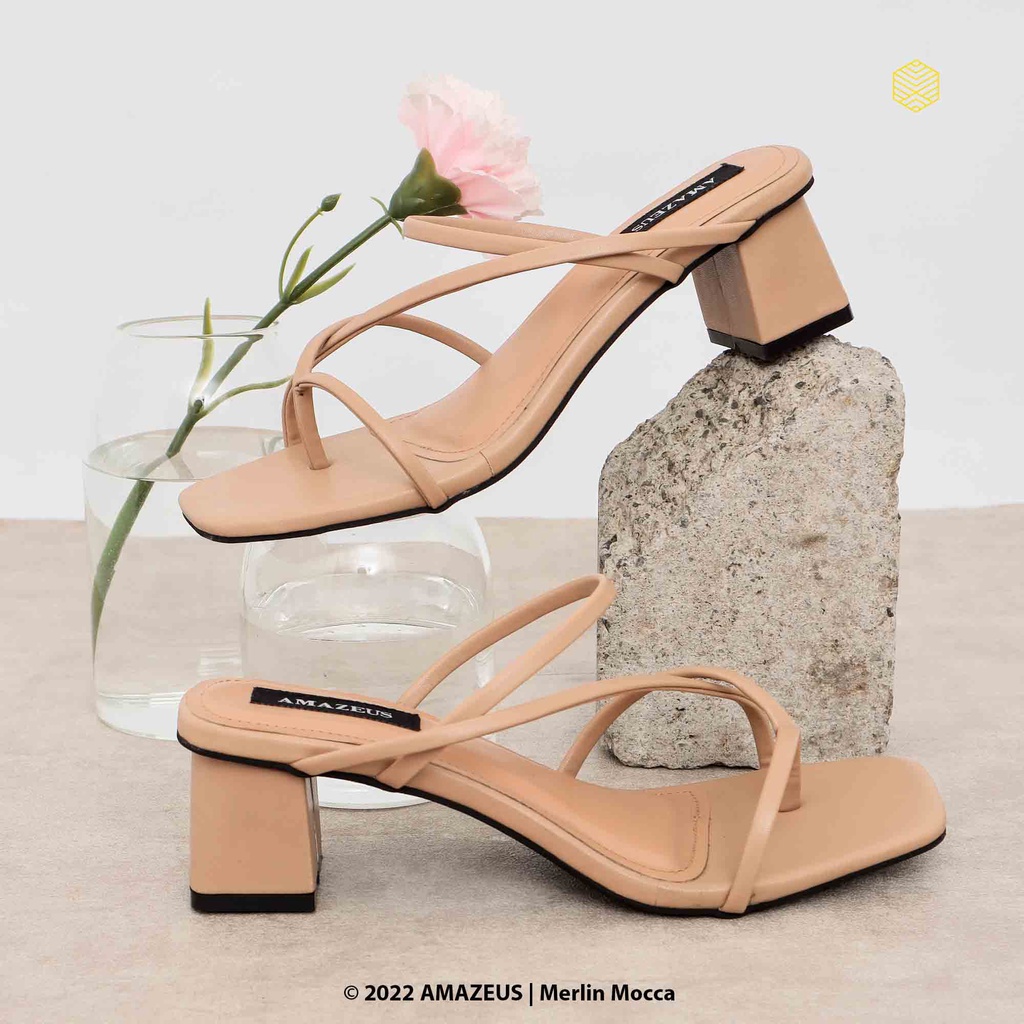 New!! MERLIN Block Heels 5cm Chunky Tofu For Women