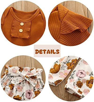 Newborn Baby Girls Clothes Ribbed Ruffled Romper+Floral Pants+Headband Infant Outfit Set
