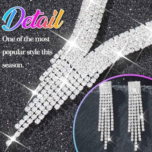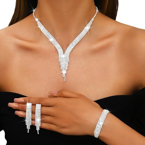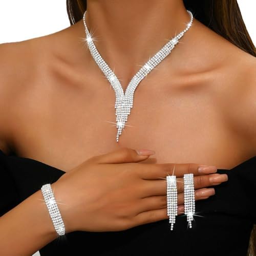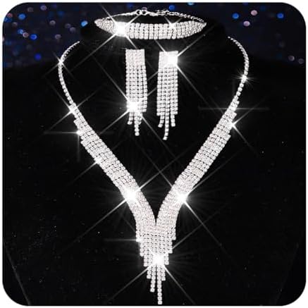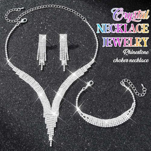 Nicute Crystal Bride Wedding Jewelry Set Tassel Necklace Bracelet Earrings Set Prom Costume Jewelry for Women