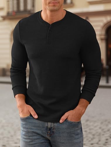 Sponsored Ad - Men's Henley Shirts Long Sleeve Button T-Shirt Fashion Casual Pullover Shirt