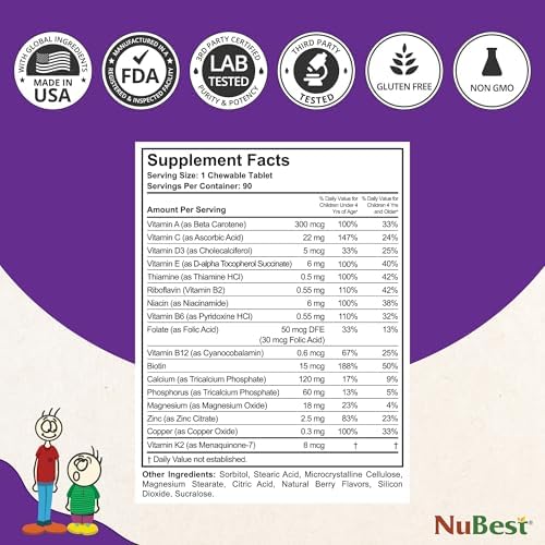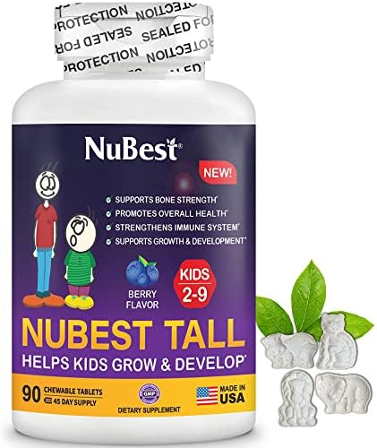 Tall Kids - Toddlers Vitamins and Kids Vitamins for Age 2 to 9 - Support Bone Strength, Overall Health and Immunity - Animal Shapes - 90 Chewable Berry Tablets | 6 Weeks Supply