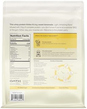 Oath Nutrition Clear Whey Isolate Protein Powder, Frosty Lemonade, 20g Complete Protein per Serving, No Added Sugar, Grass-Fed, 21 Servings