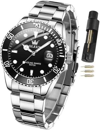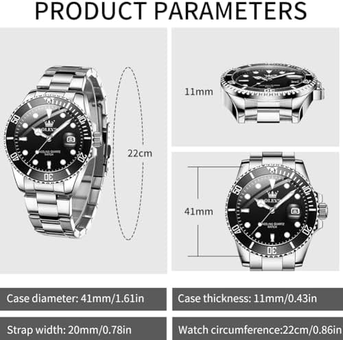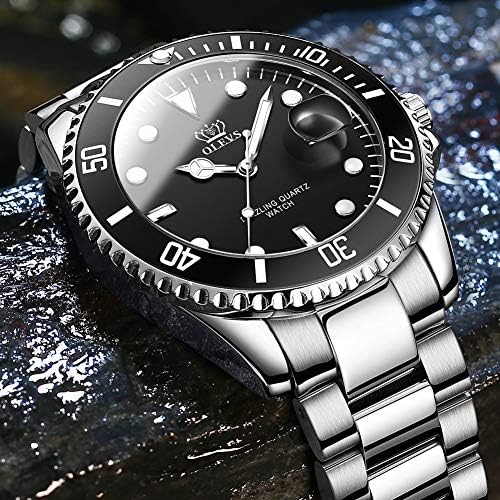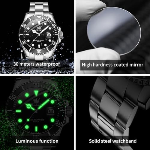 Watches for Men Classic with Date Business Dress Luxury Big Face Green/Black/Blue Waterproof Luminous Mens Wristwatch Analog Two Tone Stainless Steel Male Watch