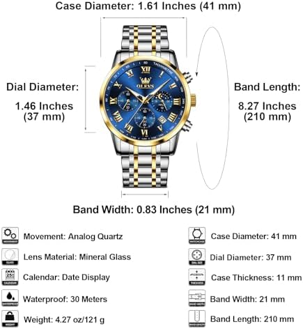 Mens Stainless Steel Chronograph Watch, Big Face Roman Numerals Date Analog Quartz Dress Watches for Men, Fashion Multifunctional Waterproof Luminous Hands Men's Wristwatch