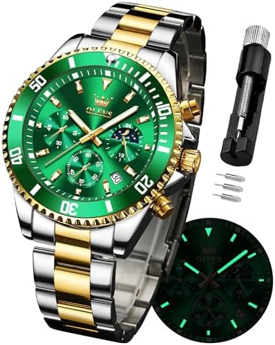 Sponsored Ad - Watches for Men Stainless Steel Analog Quartz Chronograph Moon Phase Watch Waterproof Date Luminous Wrist Male Watches,Gift for Men