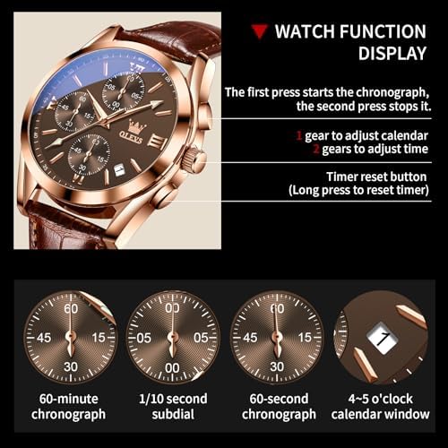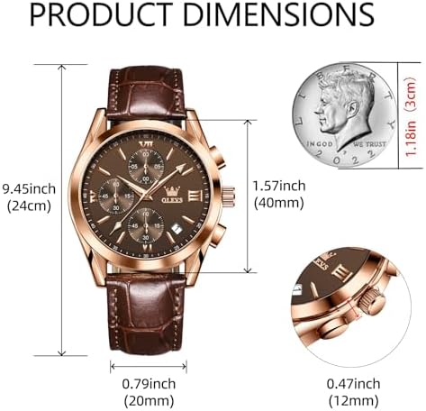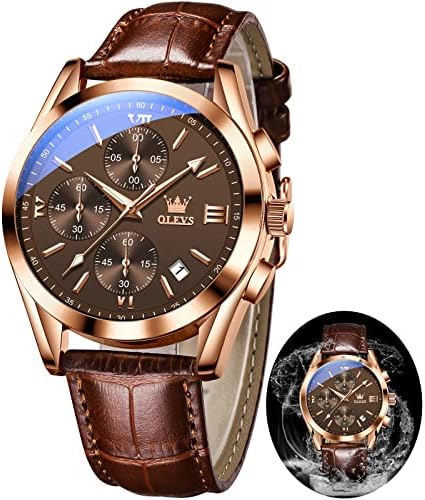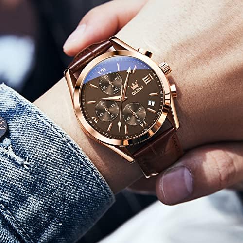 Sponsored Ad - Leather Chronograph Watch Men - Leather Strap (Brown/Black), Work Luminous Waterproof Analog Quartz Dress Wrist Watch with Blue/Black/Brown/White Dial