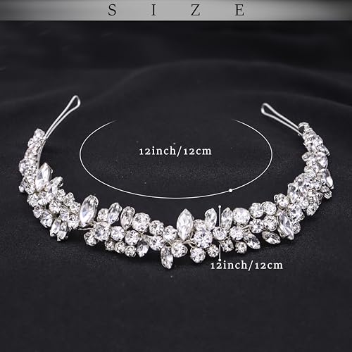 Oriamour Crystal Wedding Headband For Bride Bridal Headpieces For Girls Rhinestone Hairband For Birthday, Party, Prom (Silver)