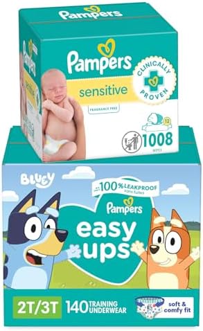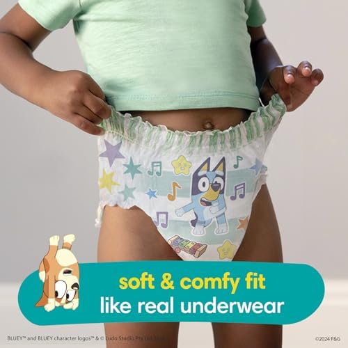 Easy Ups Bluey Pull On Training Pants Boys and Girls, 2T-3T, 140 Count with Sensitive Water Based Baby Wipes 12 Flip-Top Packs (1008 Wipes Total)