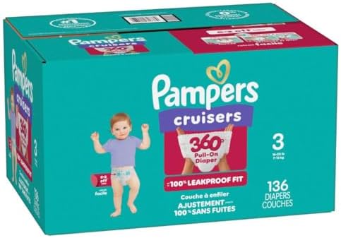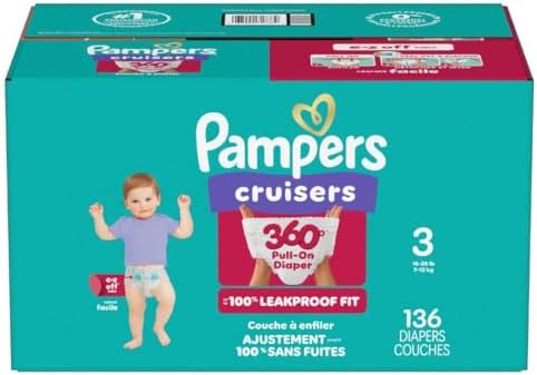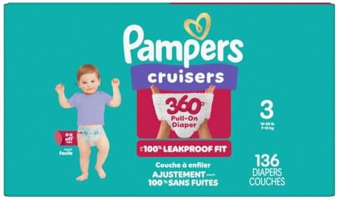 Diapers - Cruisers 360 - Size 3, 136 Count, Babyproof up to 100% Leakproof Pull-On Diaper