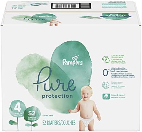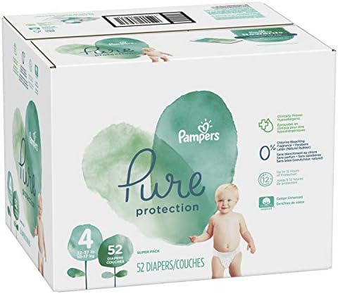 Diapers Size 4, 52 Count - Pampers Pure Protection Disposable Baby Diapers, Hypoallergenic and Unscented Protection, Super Pack (Old Version)