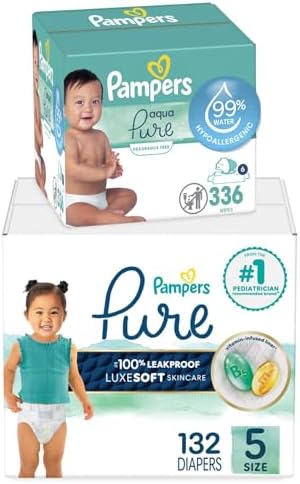Pure Protection Disposable Baby Diapers Size 5, 132 Count with Aqua Pure Baby Wipes, 6X Pop-Top Packs (336 Count)
