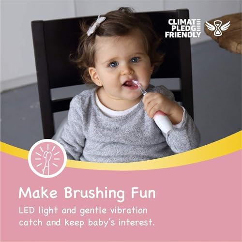 Papablic BabyHandy 2-Stage Sonic Electric Toothbrush for Babies and Toddlers Ages 0-3 Years, Pink