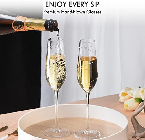 Sponsored Ad - Champagne Flutes Glasses Set of 2, Bride and Groom Champagne Flutes, Wedding Toasting Flutes Wraparound Hand-Cut Design Embellished with Crystals, Anniversary Party Birthday Banquets Pr