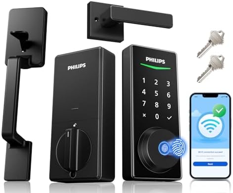 WiFi Smart Lock + Door Handle Set, Built-in WiFi, APP Remote Control, Keypad Door Locks for Front Door, Fingerprint Unlock, Voice Control, Digital Deadbolt Smart Lock, Keyless Entry, Auto Lock