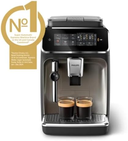 3300 Series Fully Automatic Espresso Machine - 5 Hot & Iced drinks, 40% Quieter SilentBrew, Ceramic Grinder, Aquaclean Filter, Black Chrome (EP3326/90)