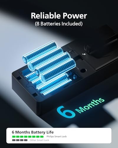 Built-in WiFi Smart Lock, Keyless Entry Door Lock with App, Touchscreen, Indicator Light, Fingerprint Door Lock — Compatible with Alexa & Google, Splash-Proof Design, Includes 8 Batteries