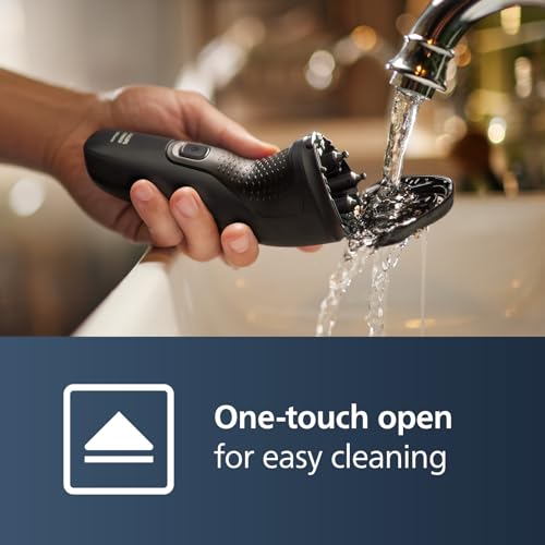 Philips Norelco Shaver 1100 Series, Dry Electric Shaver, 27 Self-Sharpening ComfortCut Blades, 4D Floating Heads, P-Cap, Deep Black, Model S1016/90