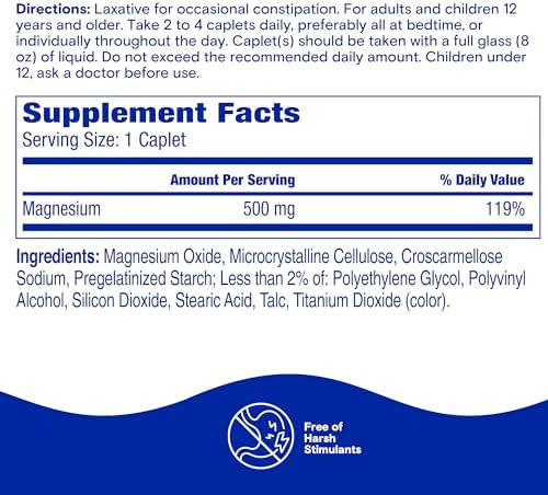 Laxative Caplets, With Naturally Sourced Magnesium Supplement for Gentle Relief of Occasional Constipation, Cramp and Stimulant Free Laxatives, 100 Caplets