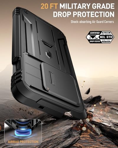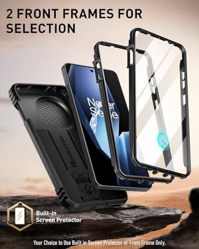 Revolution Case for OnePlus 13R 5G, [Slide Camera Cover], Built-in Screen Protector [Work with Fingerprint ID], [2 Front Frame] Full Body Rugged Shockproof Case with Kickstand, Black
