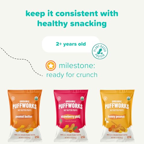 Puffworks Baby Peanut and Almond Variety Pack, Perfect for Early Peanut Introduction, Plant Protein, USDA Organic, Gluten-Free, Vegan, Non-GMO, Kosher, 0.5 Ounce (Pack of 12)