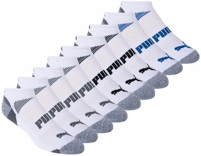Mens No Show Socks, White 10 Pair, 13-15, (PUMA-12345-WHT-13-15)