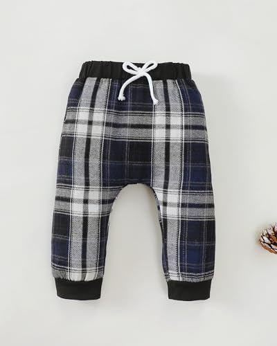 Newborn Baby Boy Fall Clothes, Long Sleeve Letter Printed Rompers Plaid Pants Hat Outfits Clothing Set 0-18 Months