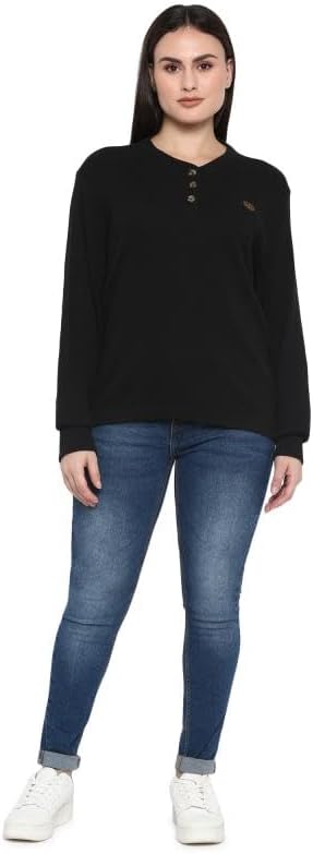 Branded Waffle Henley Women's T-Shirt 100% Cotton Long Sleeve Tee with Button Round Neck Summer Shirt for Women