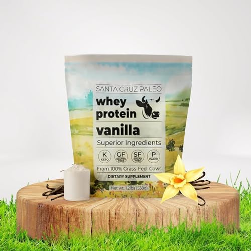 Santa Cruz Paleo Whey Protein Powder, Vanilla Flavor, 20 G Grass Fed Whey Protein Isolate Per Serving, Gluten Free, Paleo & Keto Friendly, No Sugar Added, Protein Shake Mix, 20 Servings, 1.2 lb Bag