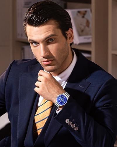 Sponsored Ad - Mens Watches Analog Quartz Chronograph Stainless Steel Watches for Men 50M Waterproof Men's Wrist Watches with Calendar Luxury Business Work Casual Watch Elegant Gifts for Men