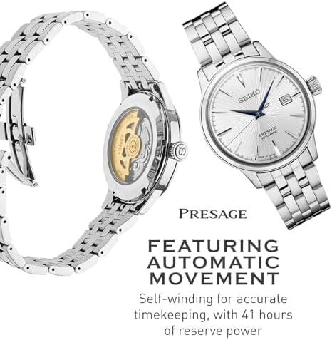 SRPB77 Automatic Watch for Men - Presage Cocktail Time - Patterned Silver Dial with Gloss Finish, Date Calendar, 50m Water-Resistant