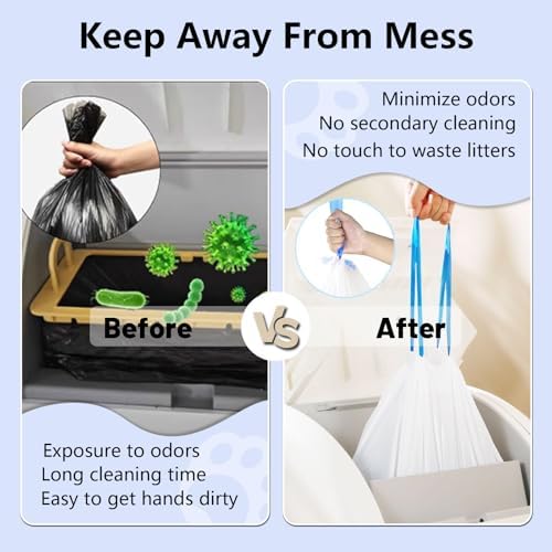 Sponsored Ad - 120 Count Self-Cleaning Cat Litter Box Liners Bag, Compatible with MeoWant-SCO1 and MeoWant-SCO2, Thick Heavy Duty Drawstring Replacement Cat Litter Box Liners-18"x 12.6"