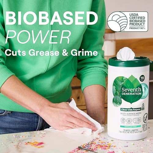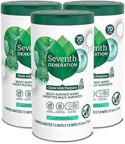 Sponsored Ad - Seventh Generation Multi Purpose Wipes All Purpose Cleaning Garden Mint scent with 100% Essential Oils and Botanical Ingredients 70 count, Pack of 3