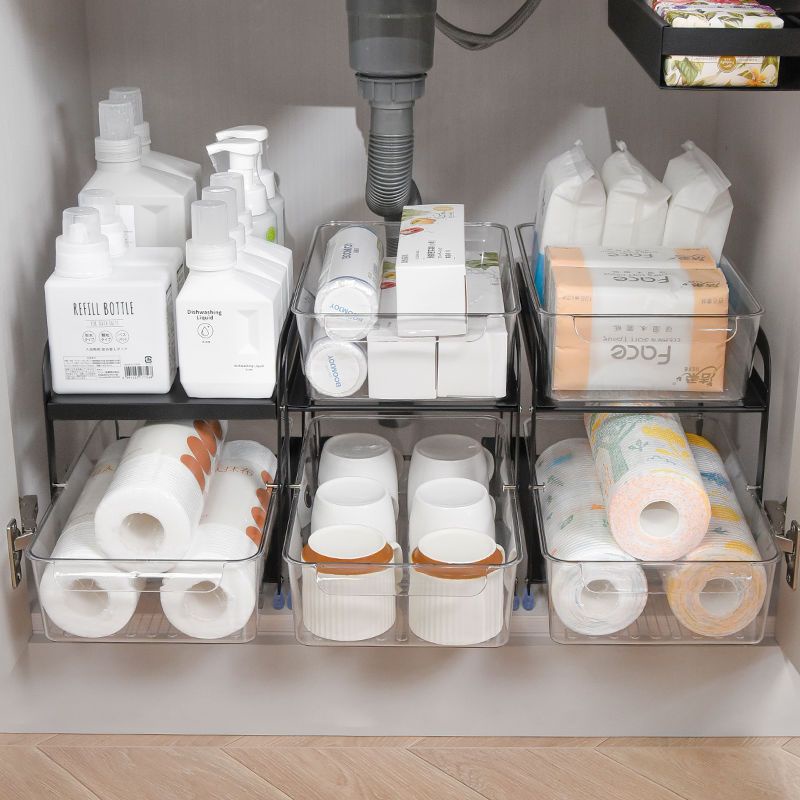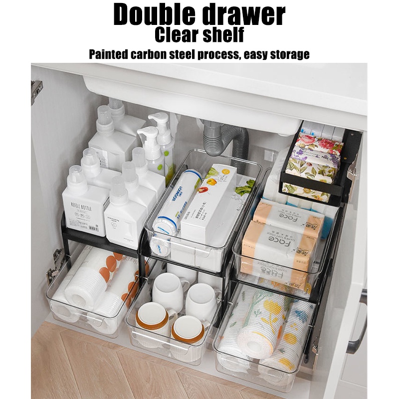 (SG STOCK)Under-sink pull-out shelf cabinet shelf kitchen spice bathroom cabinet kitchen cabinet multi-drawer storage shelf UQRN