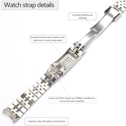 20mm Solid Stainless Steel Compatible with Rolex Jubilee with Oyster Clasp Watchbands Curved Interface Bracelet Fine Tuned Watch Buckle