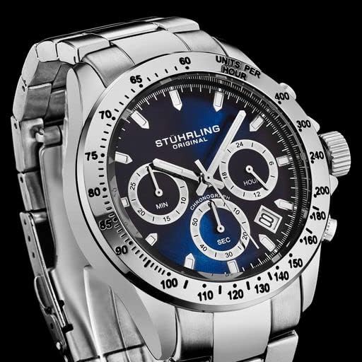 Stührling Original Men’s Chronograph Watch Stainless Steel Bracelet with Screw Down Crown and Water Resistant to 100 M. Analog Dial Quartz Movement