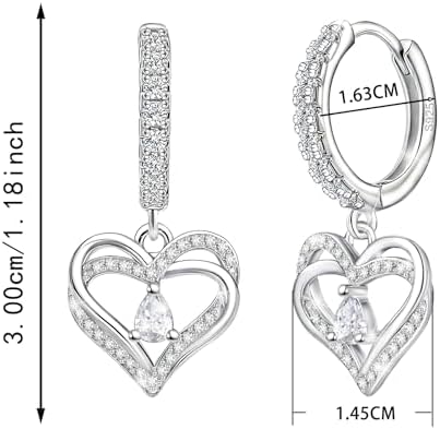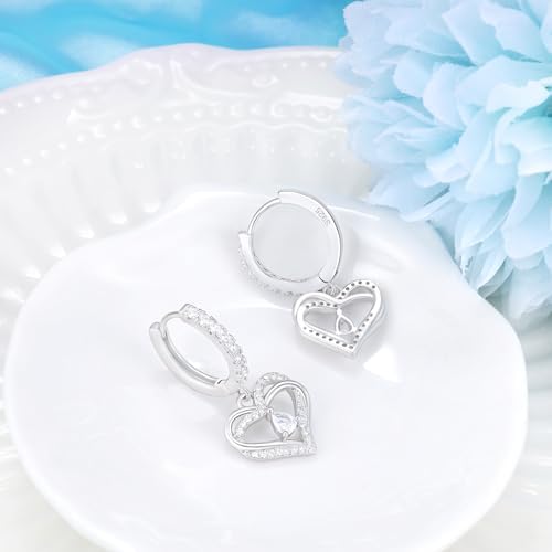 Sponsored Ad - Sterling Silver Heart Earrings for Women - Cubic Zirconia Double Heart Shaped Hoop Earrings Hypoallergenic for Sensitive Ears Classic Love Loop Jewelry Gifts for Wife Mom