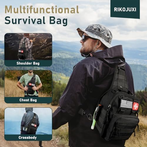 Survival Kit, 262Pcs Survival Gear and Supplies with First Aid Kit Pouch and Crossbody Bag, Emergency Kit with Tent, Camping Axe Hammer, Survival Shovel w/Pick, Bug Out Bag Gifts for Men Women